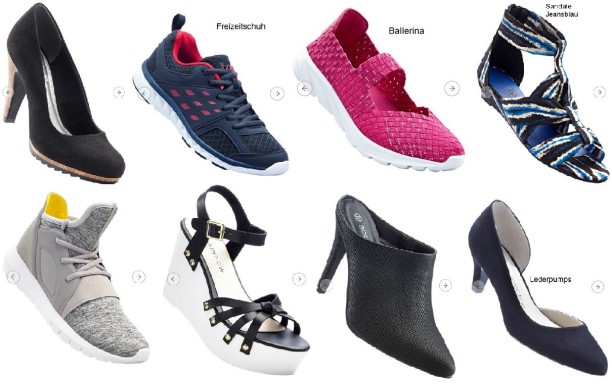 Halbschuhe, Freizeitschuhe, Stiefel, Stiefeletten, Ballerina, Keilballerina, Sneakers, Pumps, Mokassin,